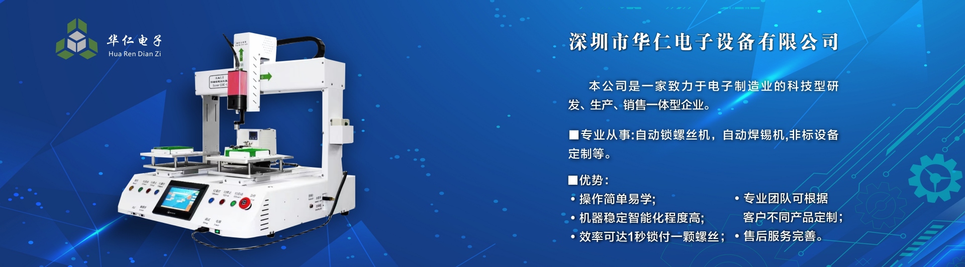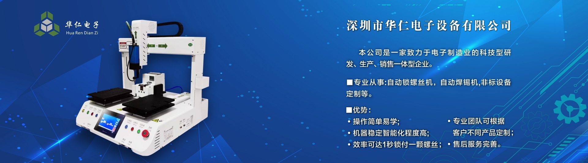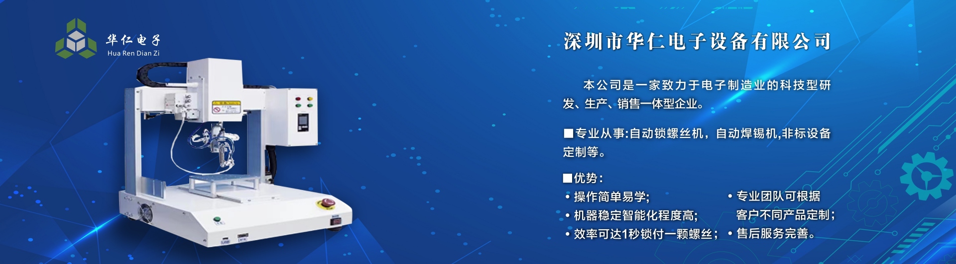 深圳市華仁電子設(shè)備有限公司是一家致力于電子制造業(yè)周邊設(shè)備的科技型研發(fā)、生產(chǎn)、銷售一體的企業(yè),專業(yè)從事:自動鎖螺絲機;自動焊錫機;非標(biāo)設(shè)備定制機等,公司長期以來在行業(yè)中積累了豐富的經(jīng)驗,擁有專業(yè)的研發(fā)、技術(shù)、銷售支持工程團隊、各高級技術(shù)人才為客戶提供優(yōu)質(zhì)產(chǎn)品和服務(wù),同時不斷吸取國內(nèi)外先進技術(shù),更準(zhǔn)確及時地為客戶提供優(yōu)質(zhì),性價比高的產(chǎn)品、公司以專業(yè)的售前、售中、售后服務(wù)贏得了客戶的信賴和好評,為客戶提供先進自動化設(shè)備一體式解決方案、